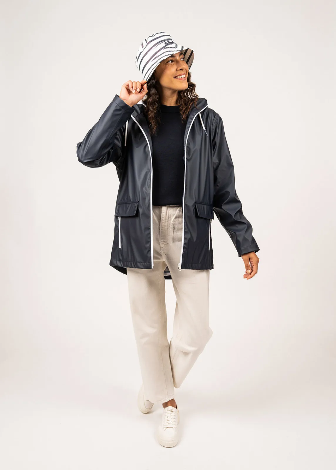 Indispensable des journées pluvieuses, ce bob en polyester est confectionné dans la même matière que notre ciré iconique Ste Emma. Waterproof, il vous protègera efficacement des intempéries.- Waterproof