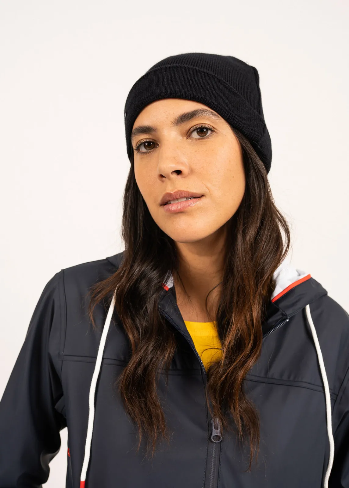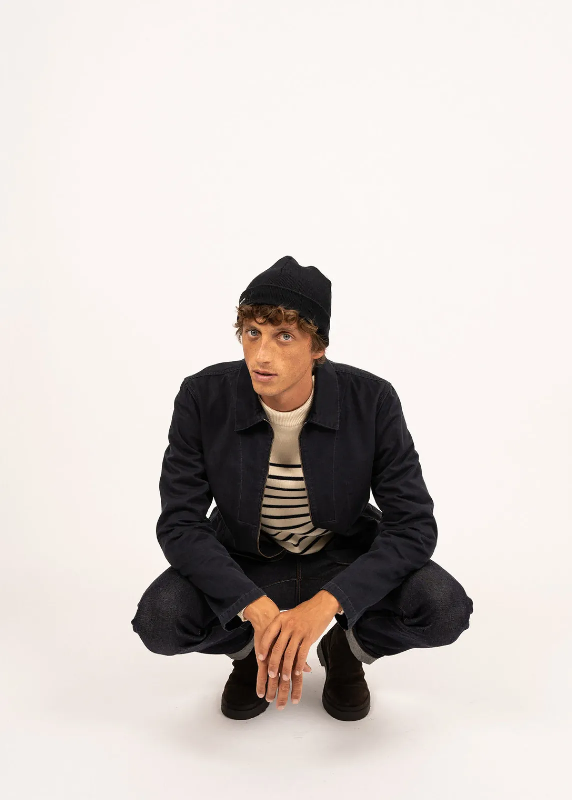 Le modèle Cartier reprend la forme emblématique du bonnet de quart des marins, en uni ou avec des rayures de bord de mer. Il se distingue par sa composition mixte, laquelle apporte un contact plus confortable et permet de faciliter l’entretien du bonnet.- Côte 1×1