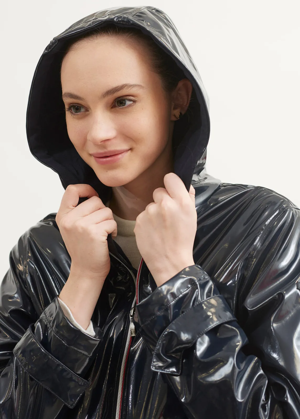 Parka waterproof avec capuche à même. Zip fantaisie devant. Poches avec rabat et pression. Patte pressionnée bas de manches. Parka doublée en jersey uni, passepoil contrasté et tresse fantaisie à l’intérieur. Poche zippée intérieure. Cordon de serrage à la taille.- Ciré brillant : polyester (100%)