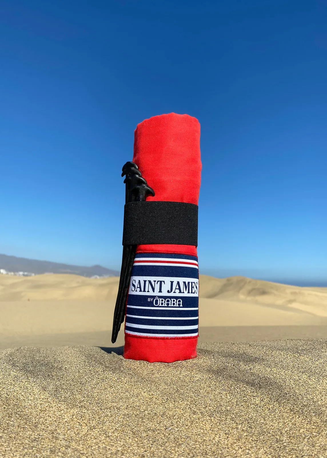 Made in France, 100% coton et spacieux (5m²), le drap de plage XXL+ ÔBABA pour SAINT JAMES est retenu à chaque extrémité par des « piquetas » en fibre ultra légère, évitant ainsi qu’il ne s’envole. Confectionné en voile de coton léger et très résistant, il ne laisse pas passer le sable. Naturellement doux et compact, c’est le drap de plage idéal pour un été en famille au bord de l’eau.