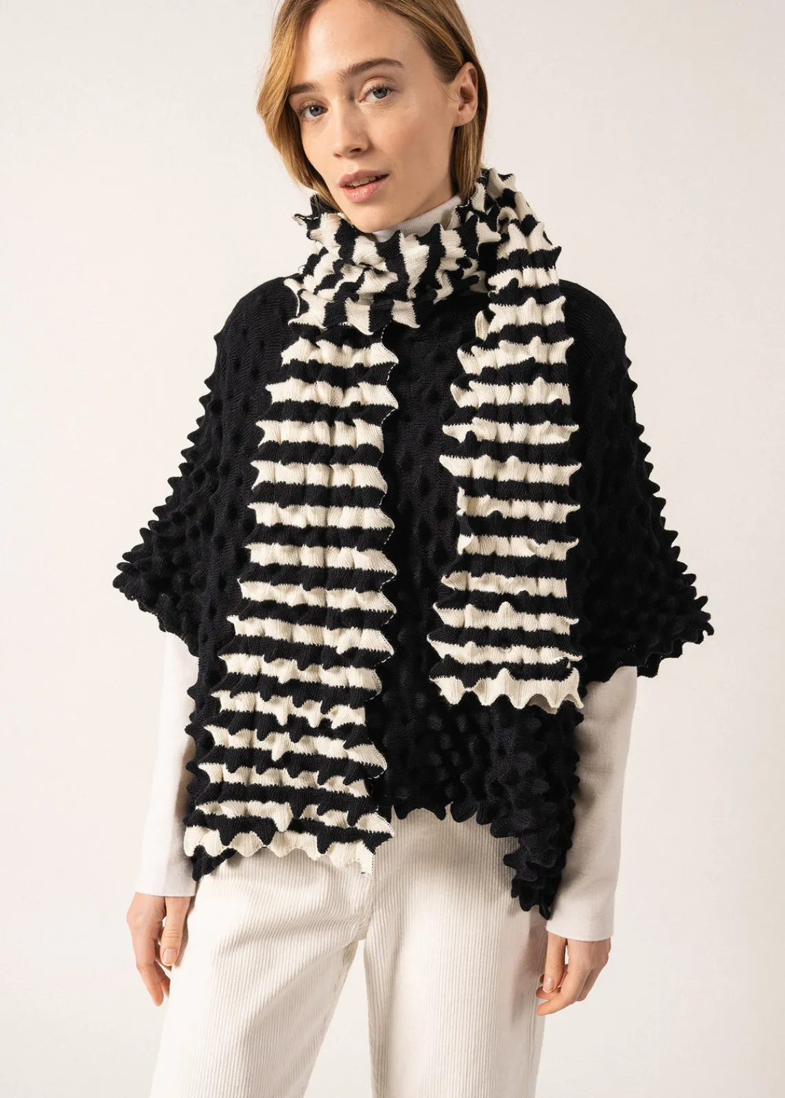 Déclinaison de notre écharpe Alvéole unie, l’écharpe Alvéole Longue est une écharpe en laine mélangée. Tricotée en maille effet « nid d’abeille », elle est originale et moelleuse, idéale pour ajouter une touche de fantaisie à votre tenue.- Echarpe alvéole