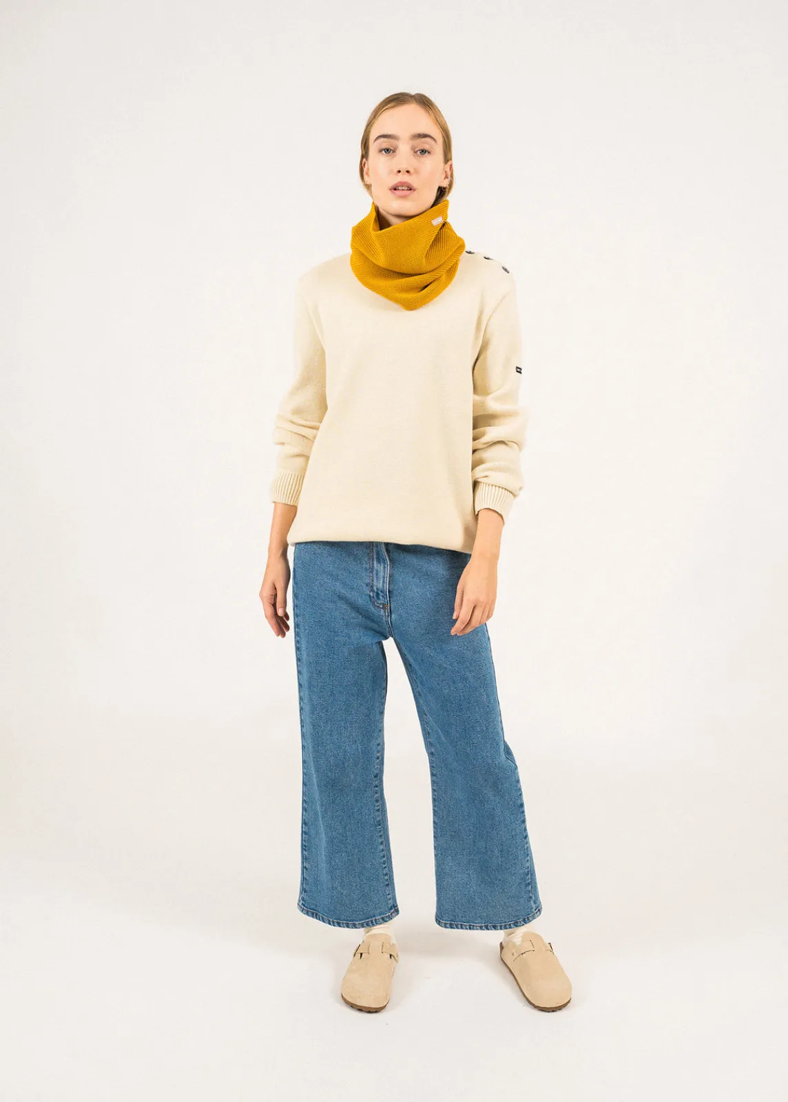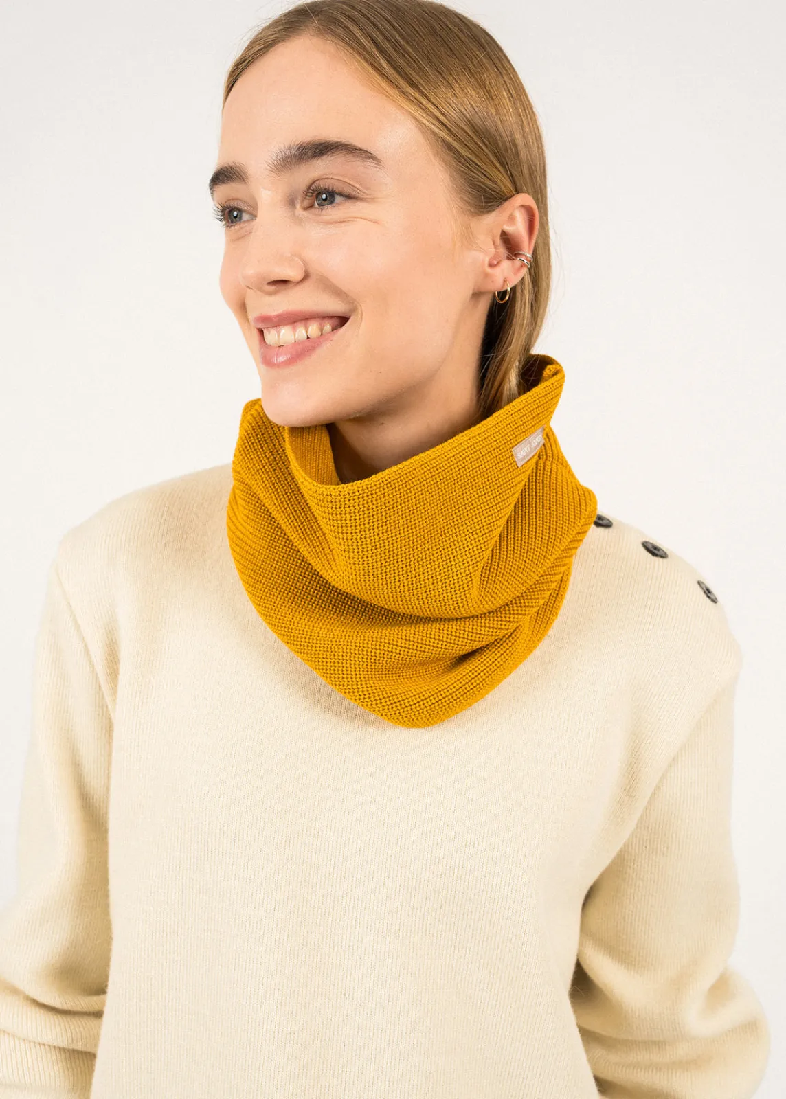 Pratique et stylé, le tour de cou Tarnos est l’alternative parfaite pour ceux cherchant un accessoire moins volumineux qu’une écharpe. Tricoté en laine dans nos Ateliers, il deviendra vite un indispensable de votre hiver. »- Snood / tour de cou