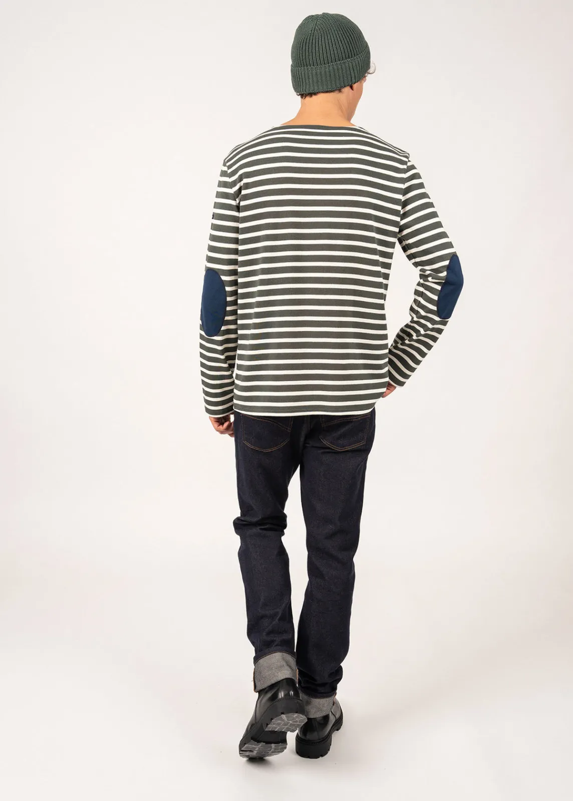 Décliné de notre iconique Méridien, cette marinière à coudières apporte une touche de modernité et d’originalité au modèle. Confectionné en jersey de coton, il conserve la tenue et l’allure du Méridien, avec une petite fantaisie.