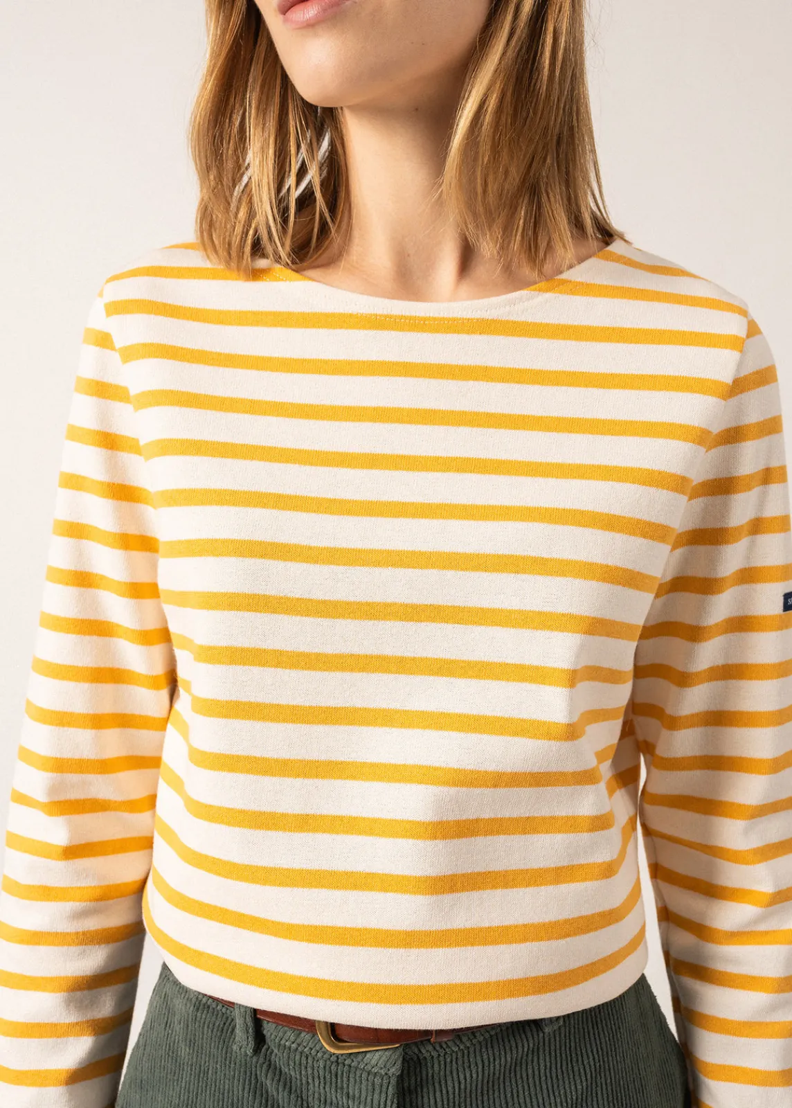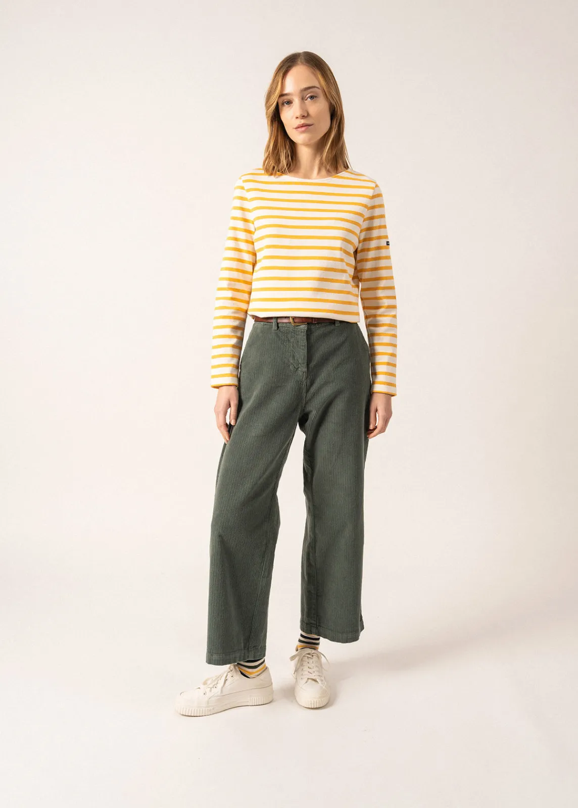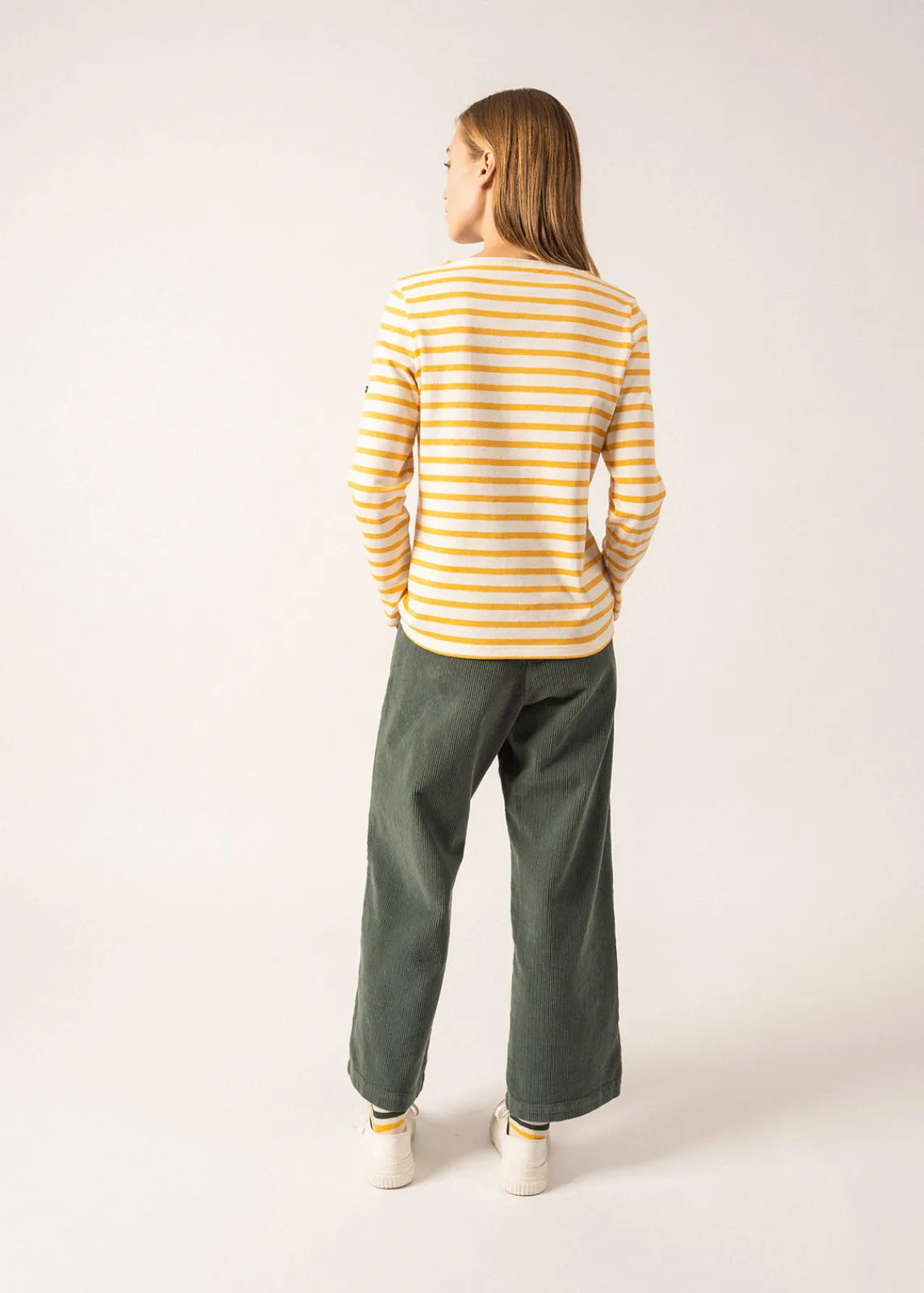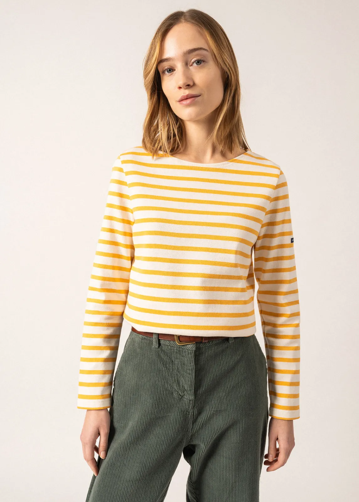 Avec sa matière authentique en coton cardé, la marinière Méridame est plus épaisse et plus rustique que notre iconique Minquidame, en coton léger. Version féminine de notre Méridien, sa coupe est adaptée aux morphologies féminines avec une taille légèrement marquée, et un bas de corps évasé. Une pièce chic et confortable, idéale pour les inter-saisons ou en hiver sous une jolie veste en laine.
