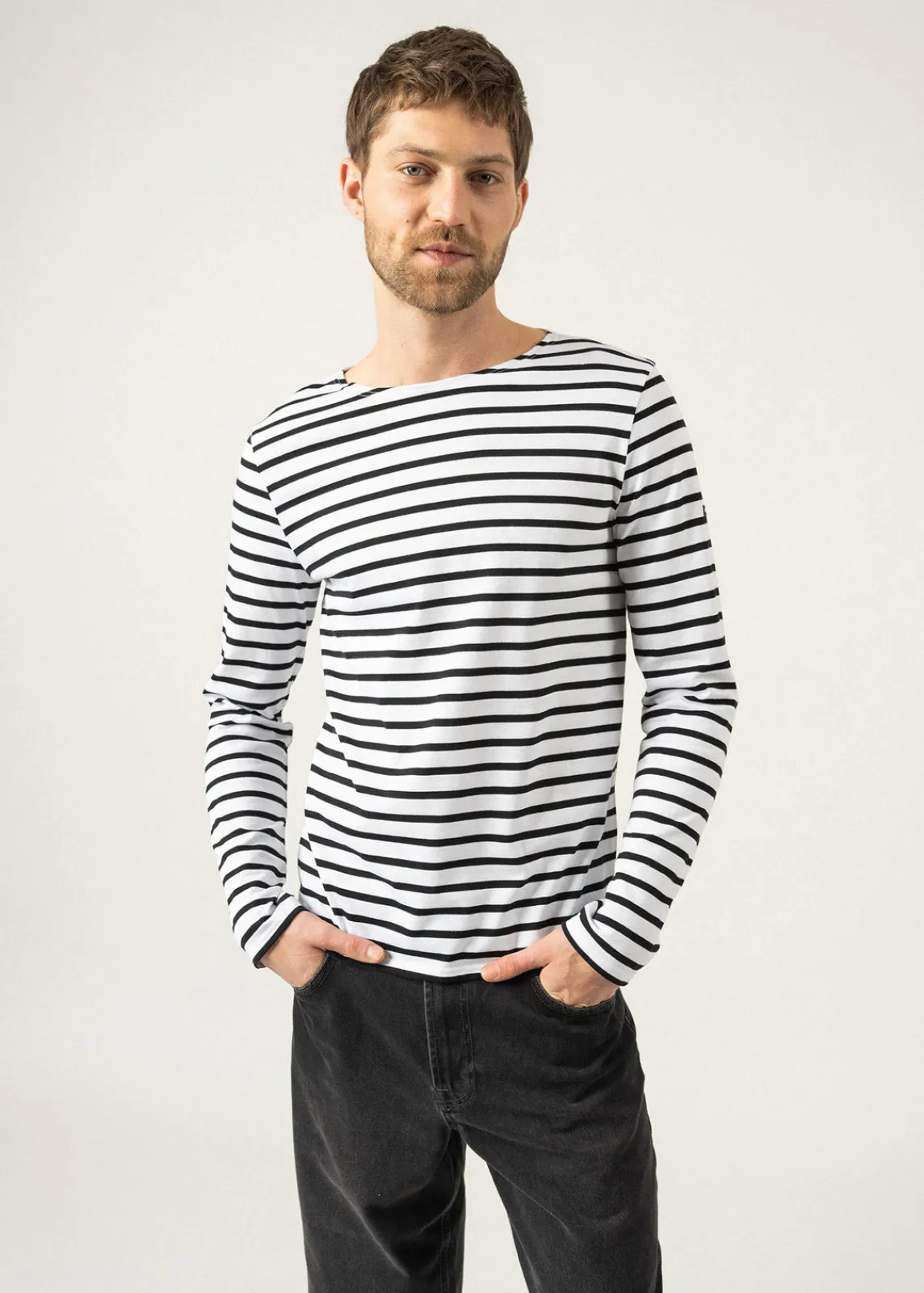 Intemporelle, graphique et décontractée, la marinière signe un état d’esprit, un art de vivre à la française. Léger, le modèle Minquiers moderne se transpose à différents styles au rythme des saisons.
