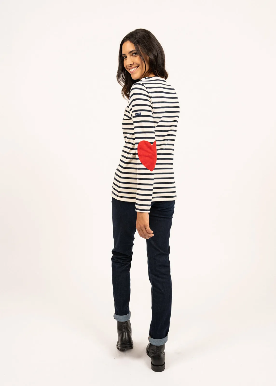 Confectionnée dans nos ateliers en jersey de coton lourd, la Marinière Vaujany reprend tous les codes de notre marinière iconique et se démarque par le travail de ses coudières en forme de cœur. On note également les subtils détails contrastés rouges à l’intérieur du col et en bas de manches. Une marinière idéale pour les amoureux de nos rayures.