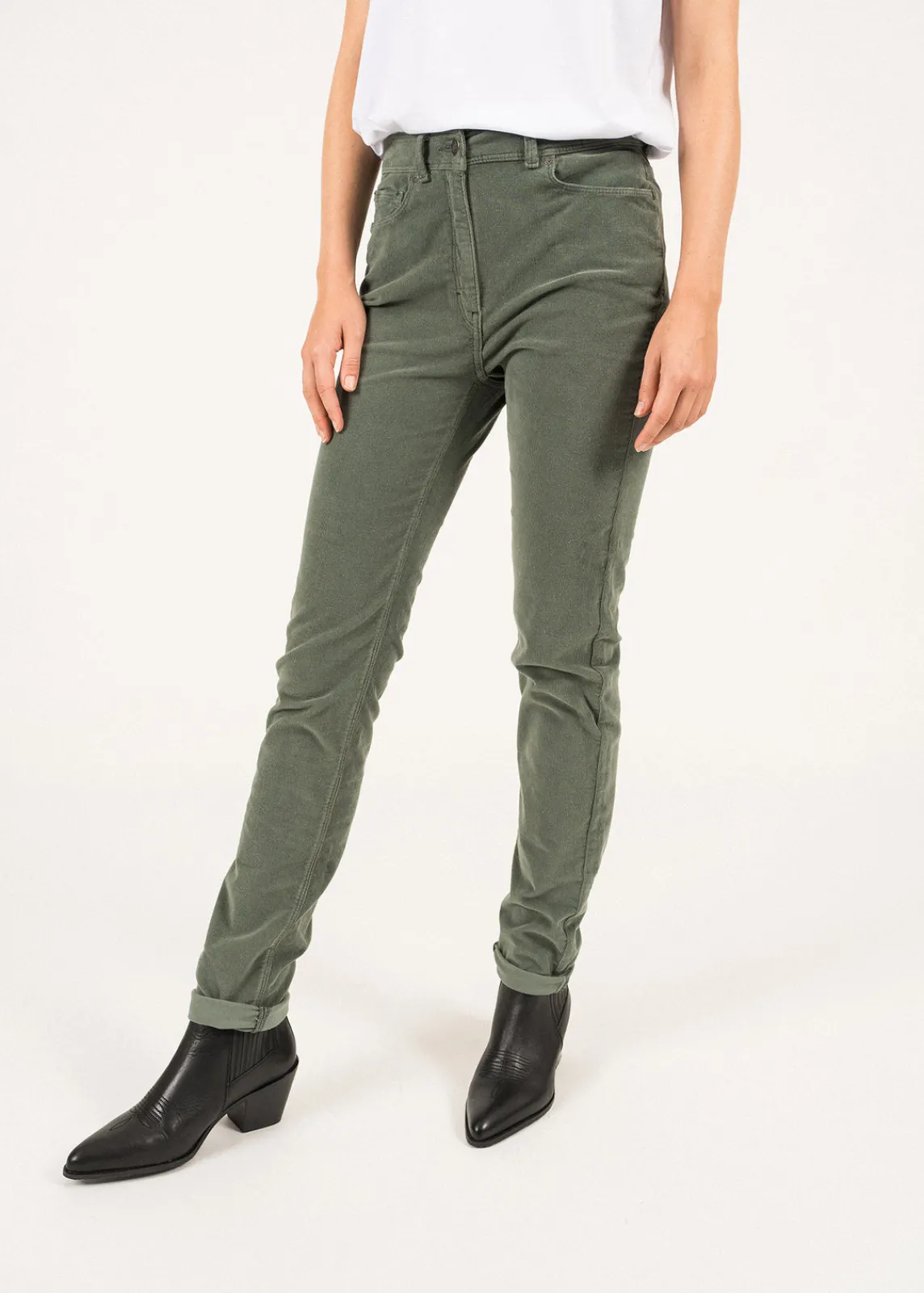 Avec sa composition mêlant coton et élasthanne, le pantalon Mimosa est confortable, facile à porter. Décliné en version velours pour l’hiver, il ajoutera une touche de style et de chaleur à vos looks hivernaux. Sa taille haute vous assure maintien et confort, pour vous permettre de bouger librement. Avec sa coupe slim, c’est un basique indispensable de votre garde-robe.