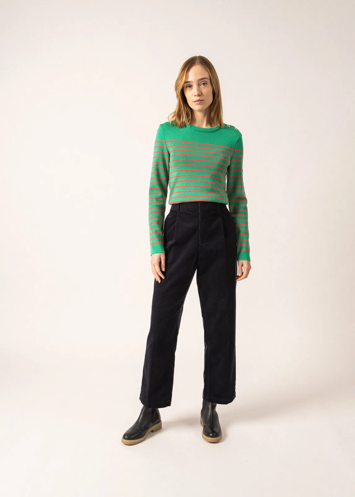 Pièce incontournable du vestiaire féminin SAINT JAMES, le pull Marée est une version féminine de notre iconique pull marin. Tricoté dans nos Ateliers dans une laine douce et fine, il est parfait pour celles cherchant à allier confort, chaleur et élégance. Intemporel, il reprend les codes centenaires de nos pulls marins : un col rond remaillé, un tricotage en côte 1×1, un boutonnage à l’épaule, une composition 100% laine vierge et une coupe près du corps, pour conserver chaleur et praticité. Versatile, il sera le meilleur allié de toutes vos tenues, habillées ou casual, classiques ou originales.