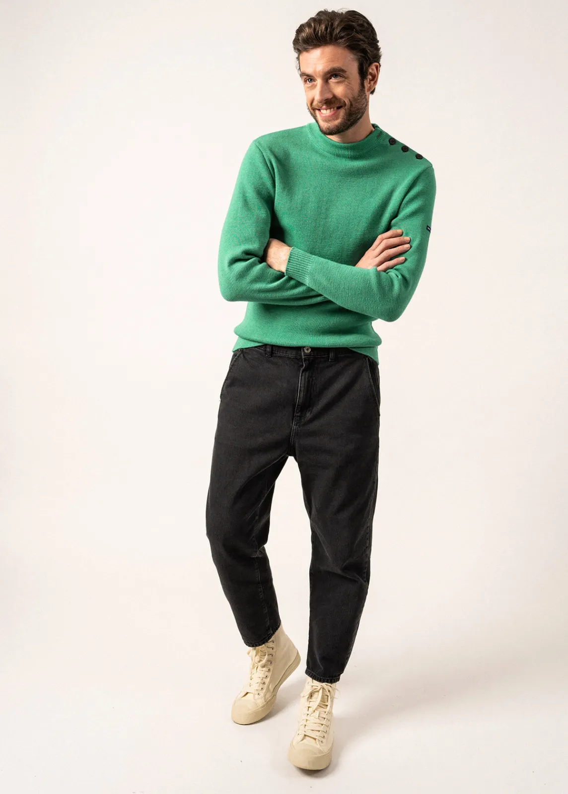 Aujourd’hui adopté par les citadins comme les marins, le pull Matelot SAINT JAMES est une pièce versatile, à l’ADN workwear.