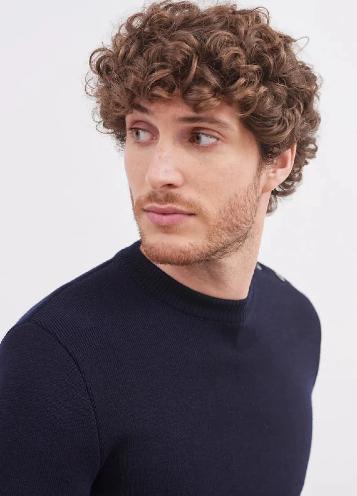 Modèle idéal de ceux aimant le charme du pull marin authentique mais recherchant plus de confort, le pull marin Rochefort est à la fois traditionnel et confortable. Confectionné en laine mérinos, il est doux, chaud, mais également respirant. Sa coupe reprend les codes du pull marin classique : un col rond remaillé, un boutonnage à l’épaule pour faciliter l’enfilage, un tricotage en côte 1×1 et une longueur permettant de protéger le dos, même lorsque l’on se baisse.