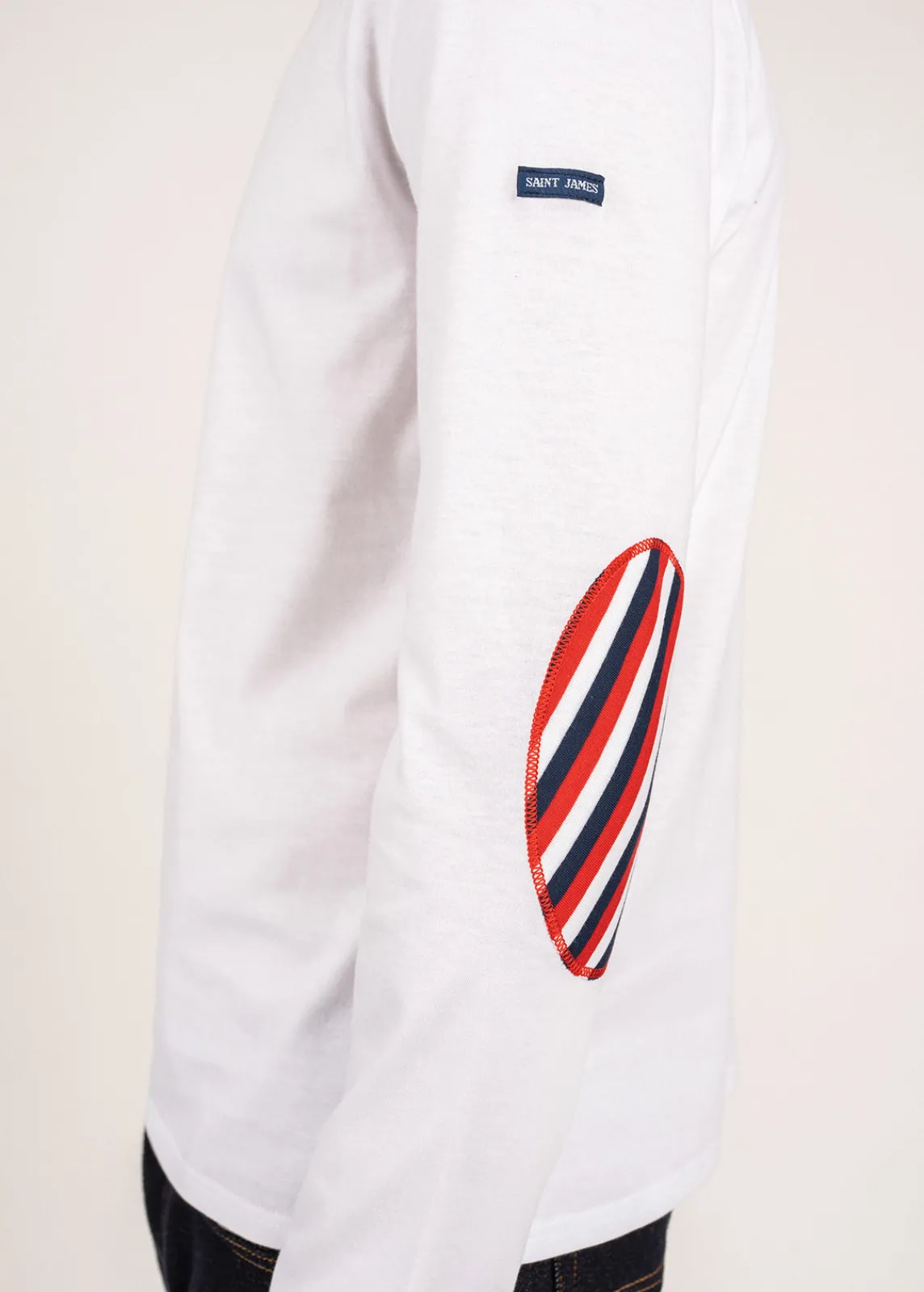 SAINT JAMES T-shirts & Polos*T-shirt manches longues à coudières rayées Neige/neige/marine/tulipe