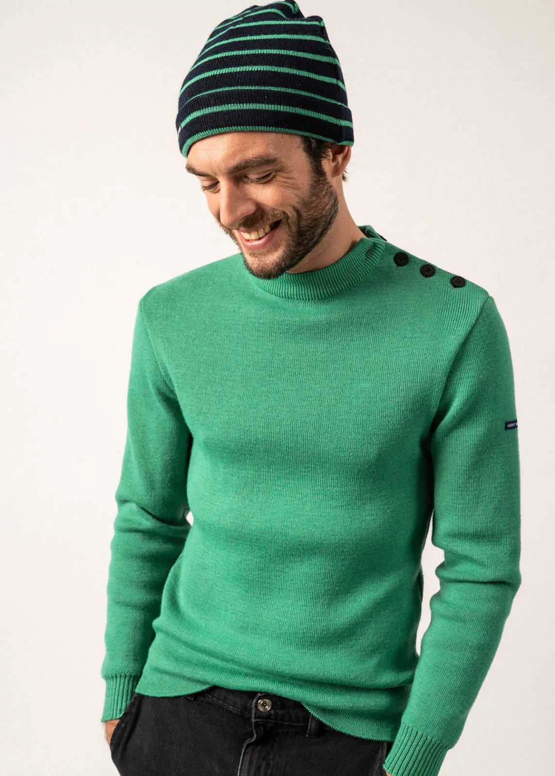 Célèbres pour leur longévité, les modèles Bonnets Saint James sont tricotés dans la même laine et dans un point identique aux pulls marins emblématiques, sollicités pour leur résistance et leur propriété isolante. Rayés ou unis, ces bonnets protègent du froid quand le tricotage serré limite l’absorption de la pluie.- Côte 1×1