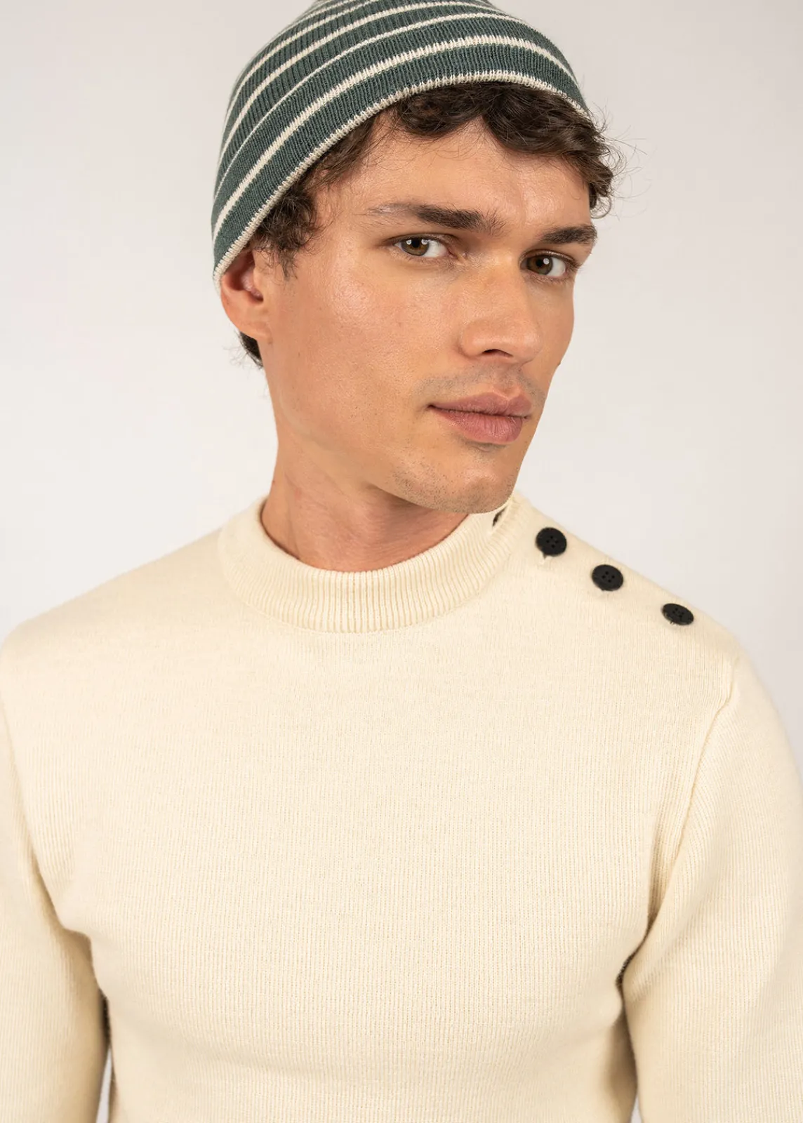 SAINT JAMES Bonnets & Chapeaux*Bonnet de quart rayé Vegetal/ecru