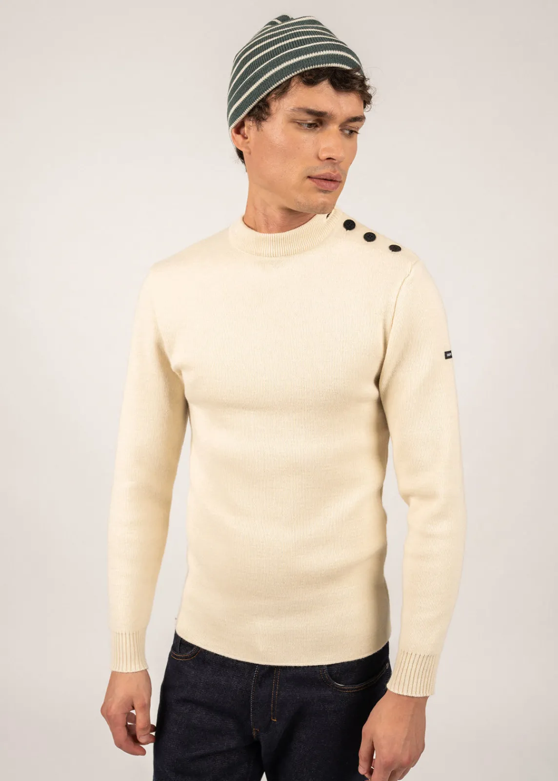 Célèbres pour leur longévité, les modèles Bonnets Saint James sont tricotés dans la même laine et dans un point identique aux pulls marins emblématiques, sollicités pour leur résistance et leur propriété isolante. Rayés ou unis, ces bonnets protègent du froid quand le tricotage serré limite l’absorption de la pluie.- Côte 1×1