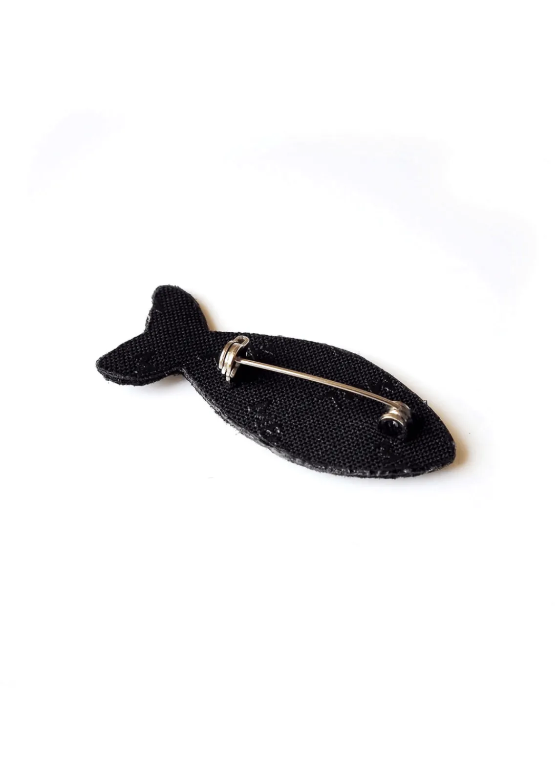 Brodée à la main avec soin, cette petite broche en forme d’arête de poisson a été imaginée par la marque Granvillaise Macon&Lesquoy.Son design original et décalé rappelle subtilement notre héritage marin et l’histoire du véritable chandail marin, porté par les pêcheurs de l’Atlantique Nord.Associez la à l’un de nos bonnets de quart pour lui apporter modernité et originalité.- Fil de cannetille