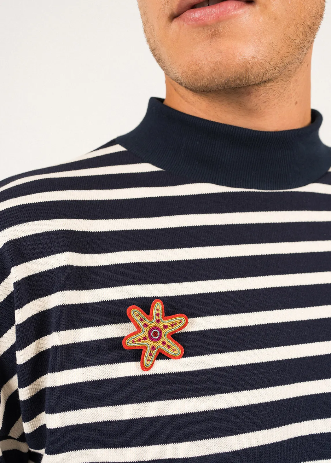 Colorée et ludique, cette broche brodée imaginée en collaboration avec Macon & Lesquoy ajoutera une touche originale à vos pulls en laine et marinières SAINT JAMES. Brodée à la main, chaque pièce est unique.