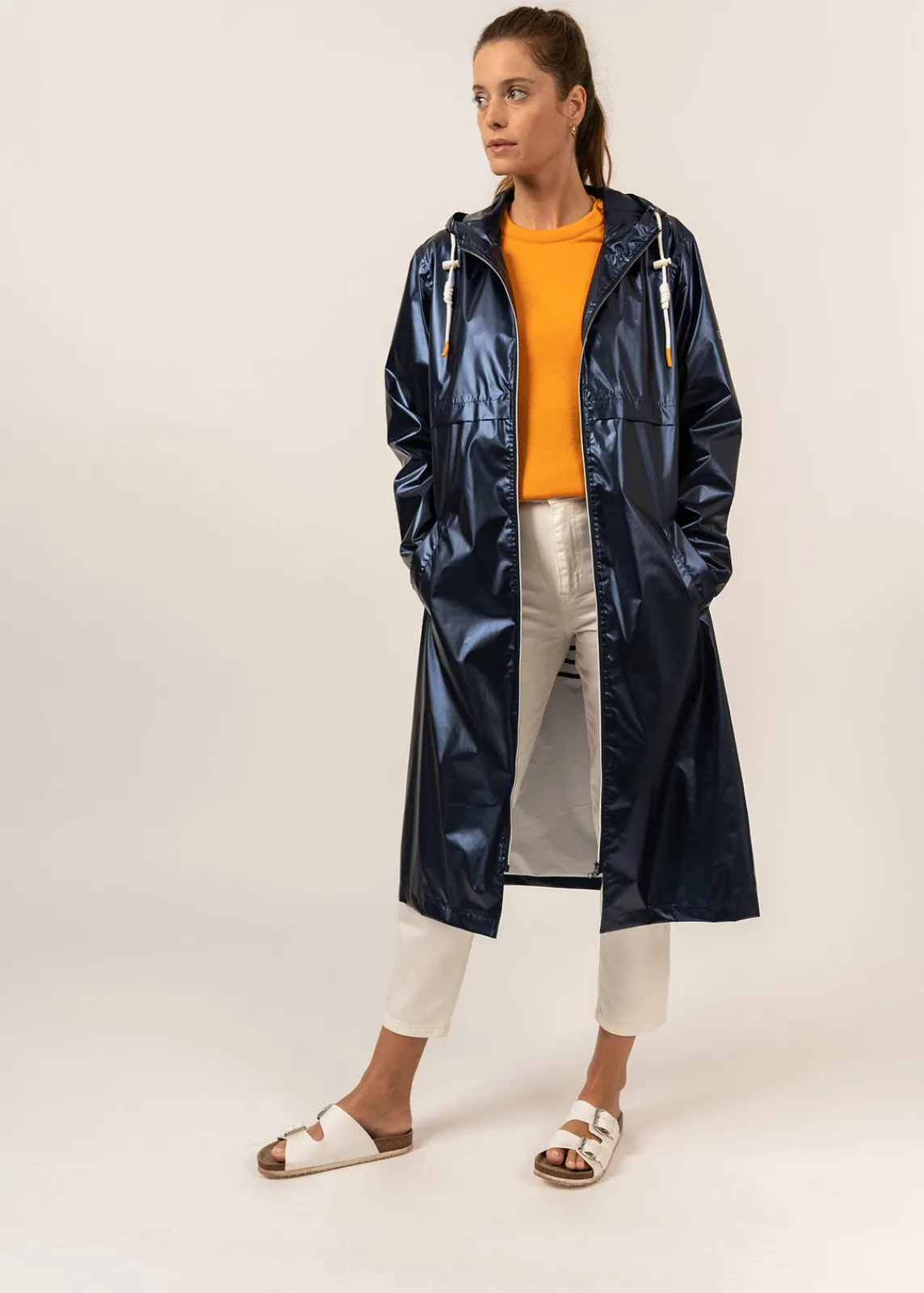 Avec sa longueur et son tissu effet métal, le ciré Ste Louna est une pièce urbaine, chic et féminine. On aime ses manches resserrées ainsi que ses poches à boutons pressions, qui apportent dynamisme et allure à l’ensemble. A l’intérieur, une doublure en coton rayé rappelle nos iconiques marinières.- Veste longue waterproof