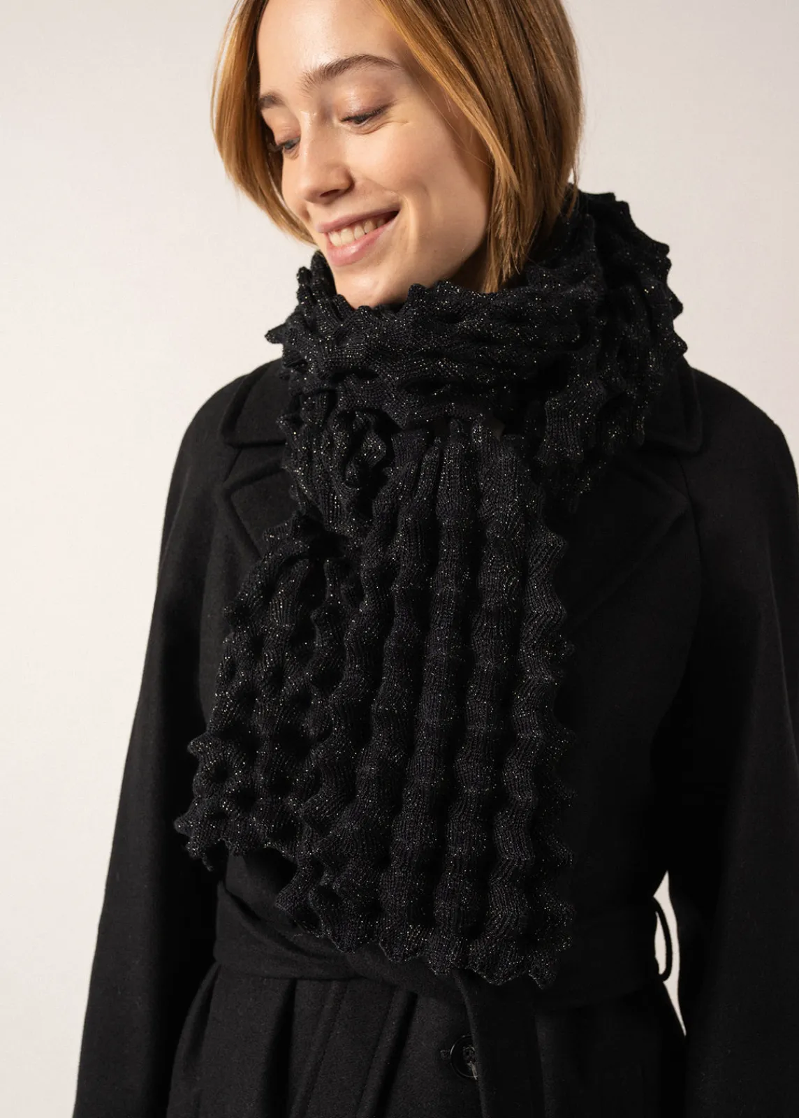 Déclinaison de notre écharpe Alvéole unie, l’écharpe Alvéole Lurex est une écharpe en laine mélangée, avec une touche de lurex. Tricotée en maille effet « nid d’abeille », elle est originale et moelleuse, idéale pour ajouter une touche de fantaisie à votre tenue.