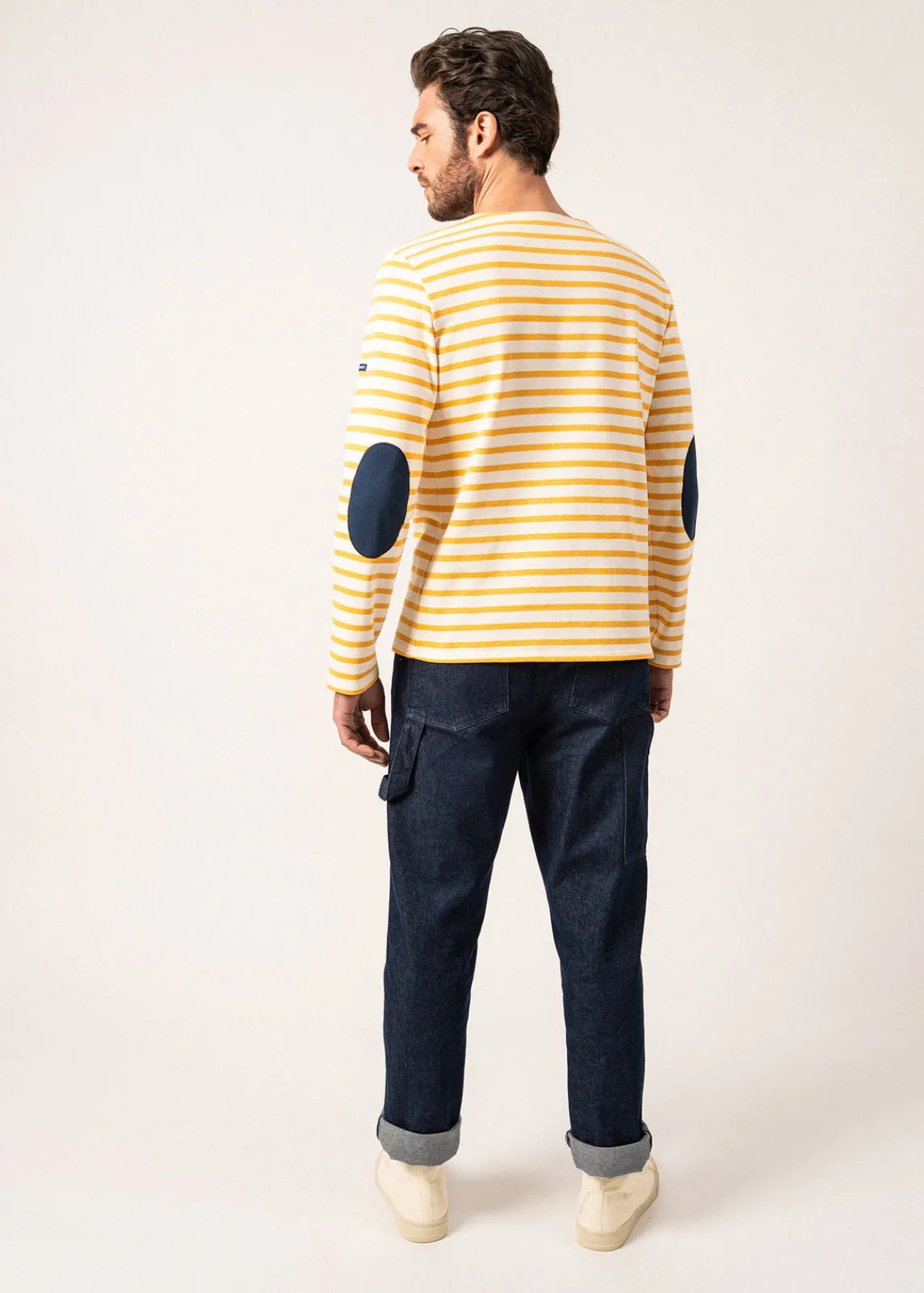 Décliné de notre iconique Méridien, cette marinière à coudières apporte une touche de modernité et d’originalité au modèle. Confectionné en jersey de coton, il conserve la tenue et l’allure du Méridien, avec une petite fantaisie.- Jersey en coton cardé (lourd)