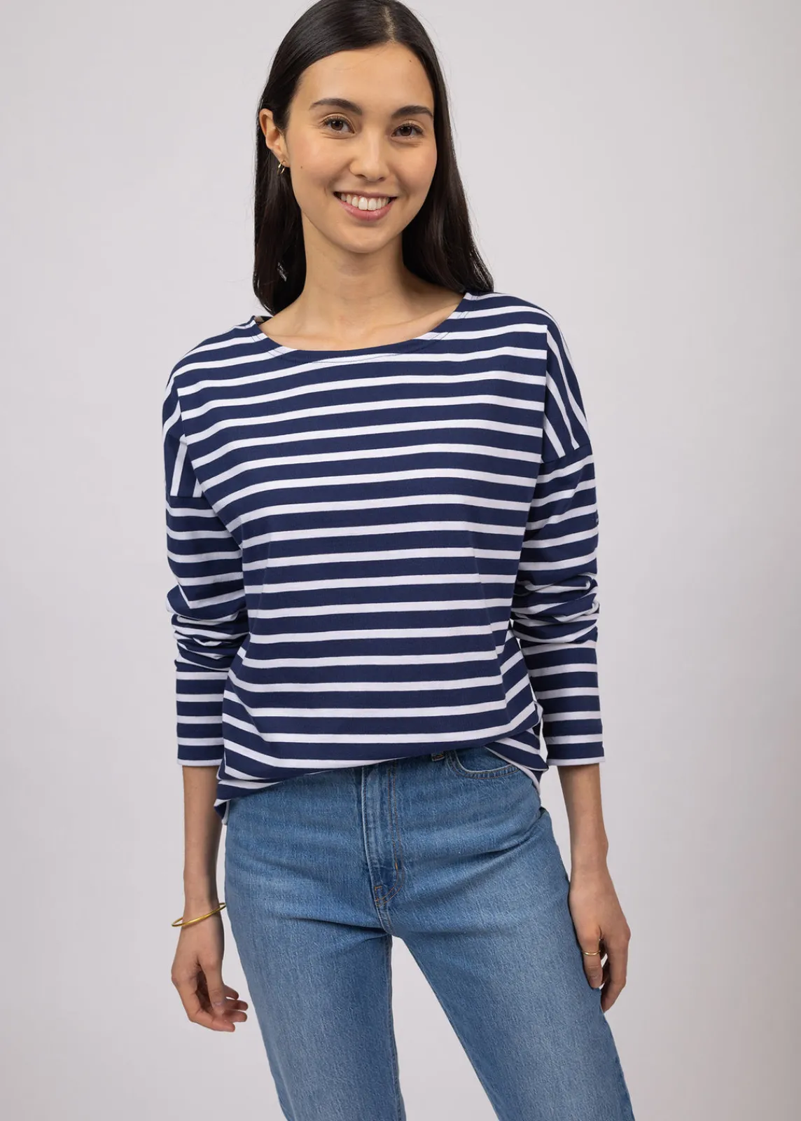 Moderne et décontractée, la marinière Minquiers Drop s’inspire de notre iconique Minquiers, mais se décline ici avec une emmanchure descendue, qui lui apporte un volume et un tombé plus contemporain. Idéal pour celles rechercahnt une marinière confortable et une coupe moins ajustée, le modèle Minquiers Drop complètera parfaitement un jean pour un look casual, ou un short pendant vos vacances estivales.