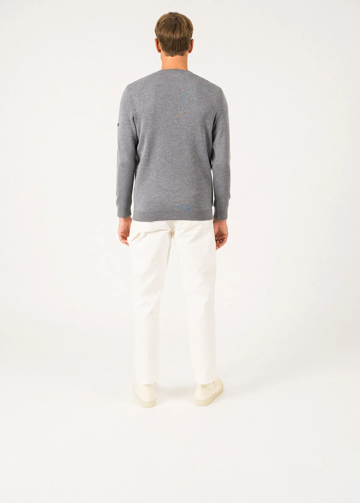 Incontournable, le pull en maille fine se décline en col V avec le modèle Cuirassé ou en col rond pour la référence Cruiser. Tricotés en pure laine douce, ces pulls associent une allure nette, une forme sobre et un confort au porté. Le raffinement s’affirme dans la simplicité.- Côte 1×1