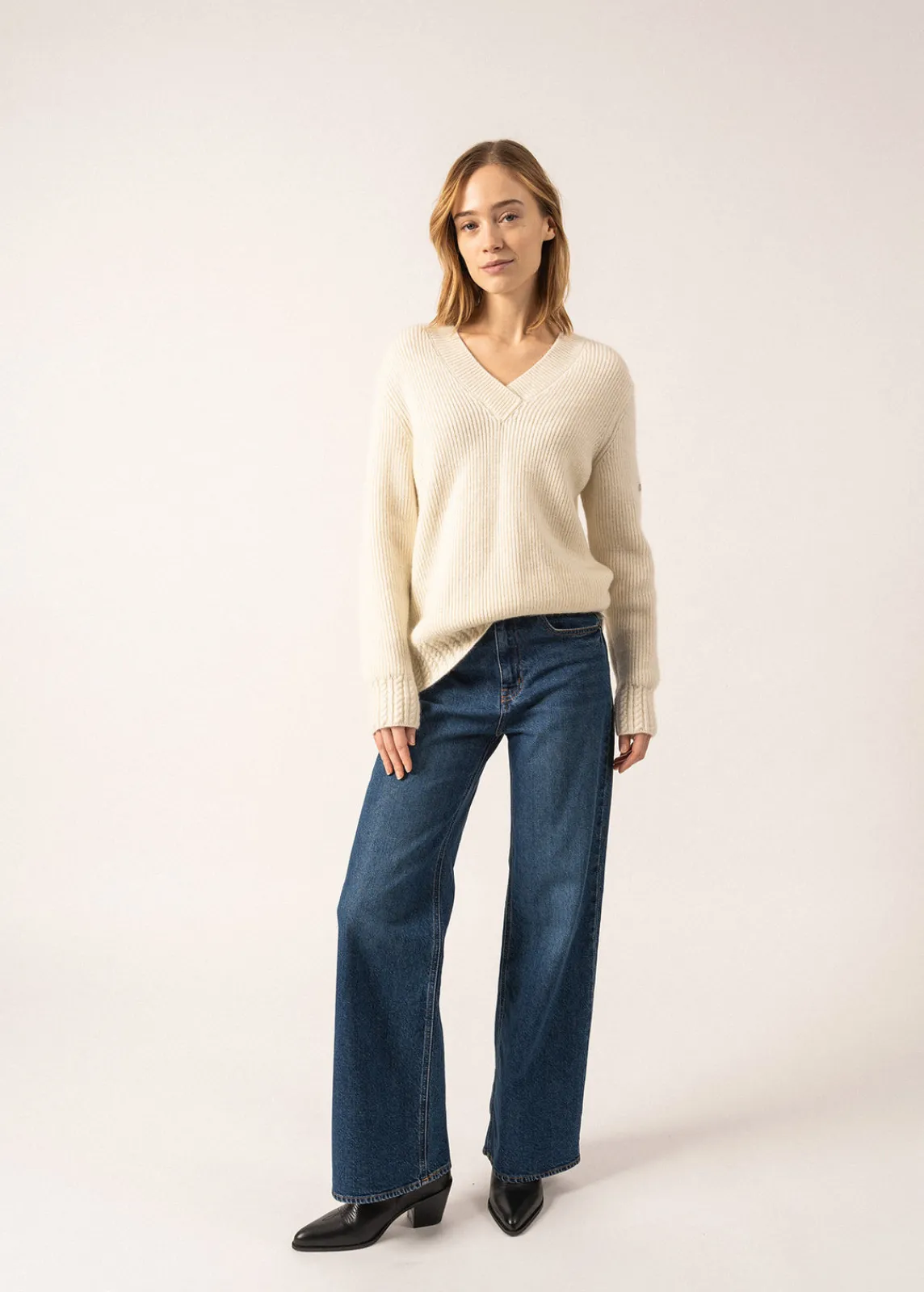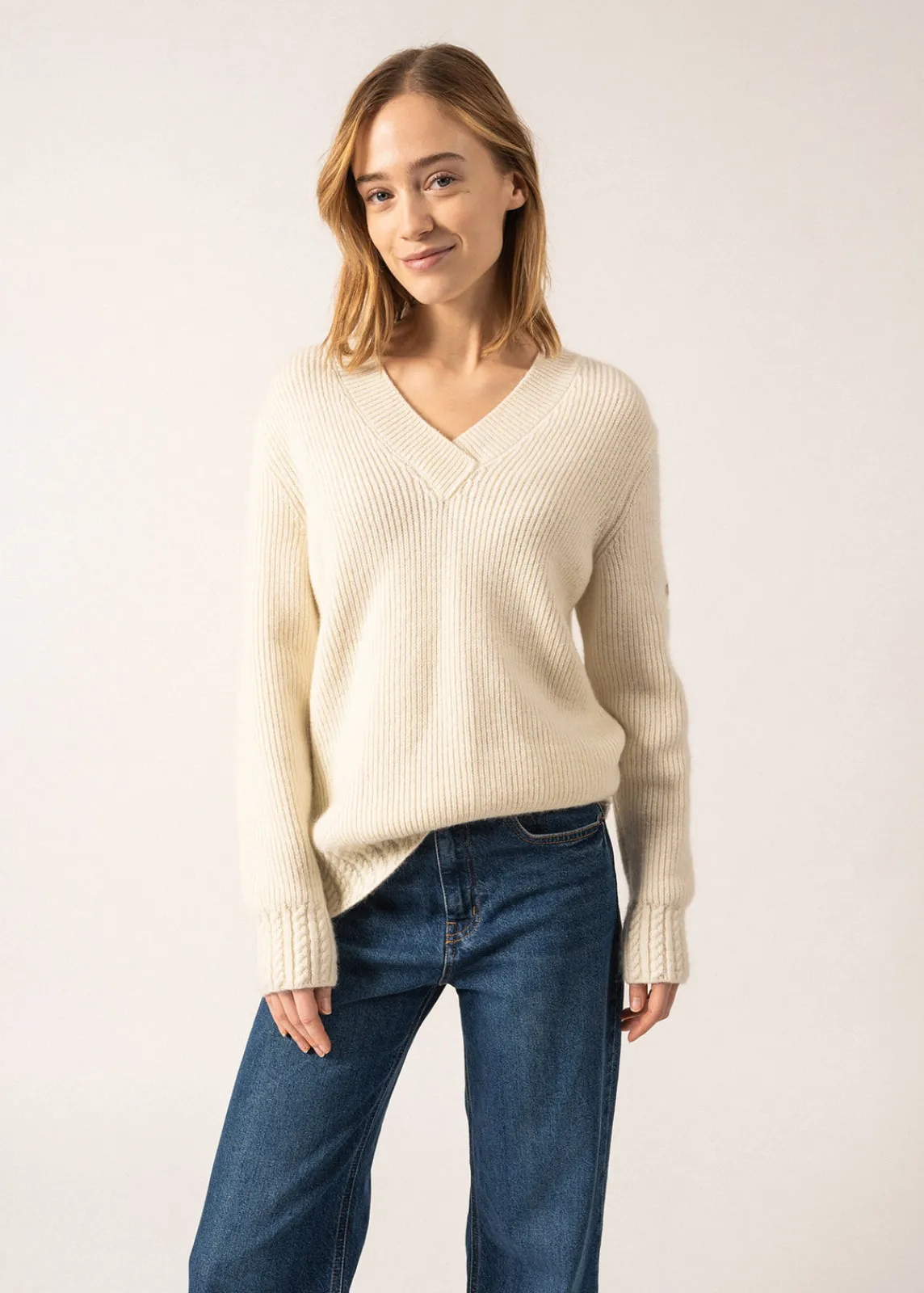 SAINT JAMES Pulls & Gilets*Pull col V Gavarnie Blancd’hiver