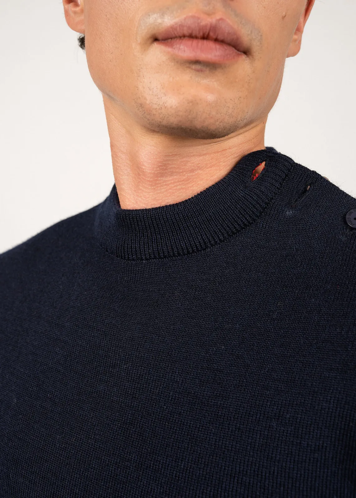 Lorsque deux institutions incontournables du patrimoine français se rencontrent, cela donne lui à une jolie collaboration s’inspirant de l’héritage de chacun et fait naitre une gamme de produits à leur image, élégante, sobre et frabriquée en France.Incontournable, le pull Matelot se pare des couleurs de la Comédie Française avec ses coudières rouges. Près du corps, épais et chaud, c’est LE pull marin traditionnel, retravaillé à l’occasion de cette collaboration.- Pull col rond intérieure contrastée