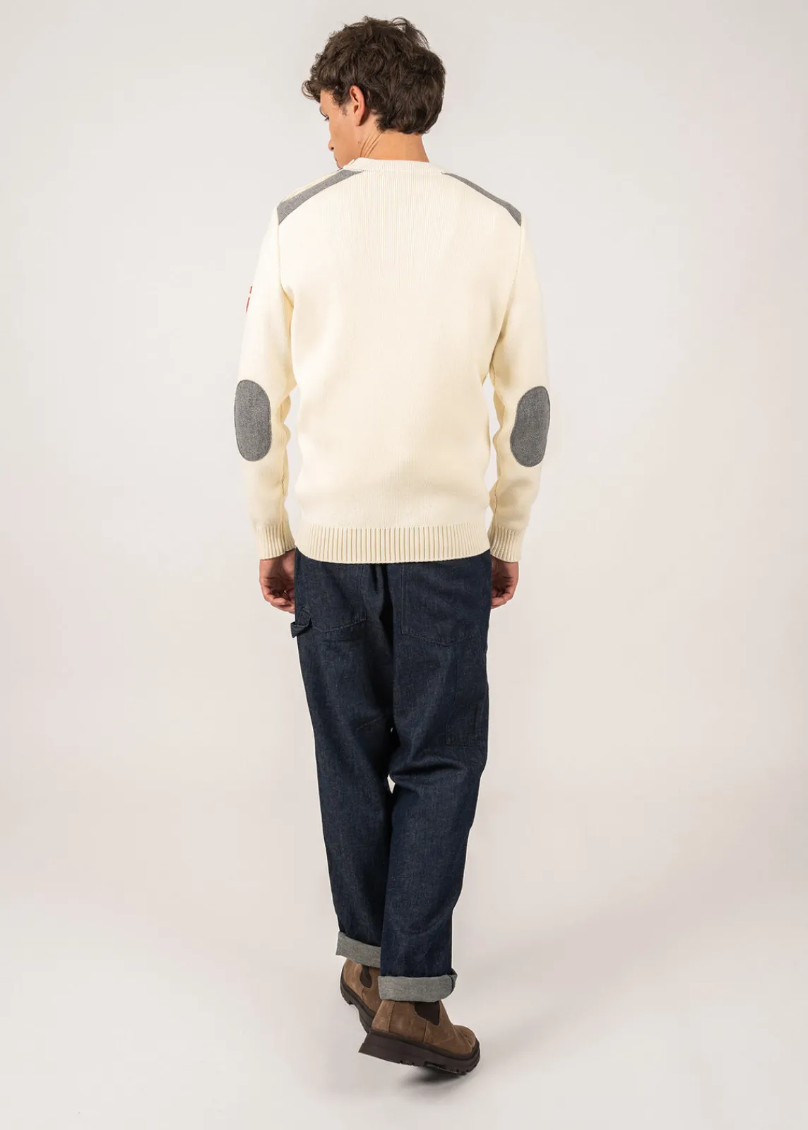 Le Moraine Arpin est un pull en laine inspiré du design de nos pulls marins traditionnels. On aime le relief apporté par ses coudières et empiècements épaule en toile de laine Arpin, ainsi que son col rond remaillé et son boutonnage épaule.