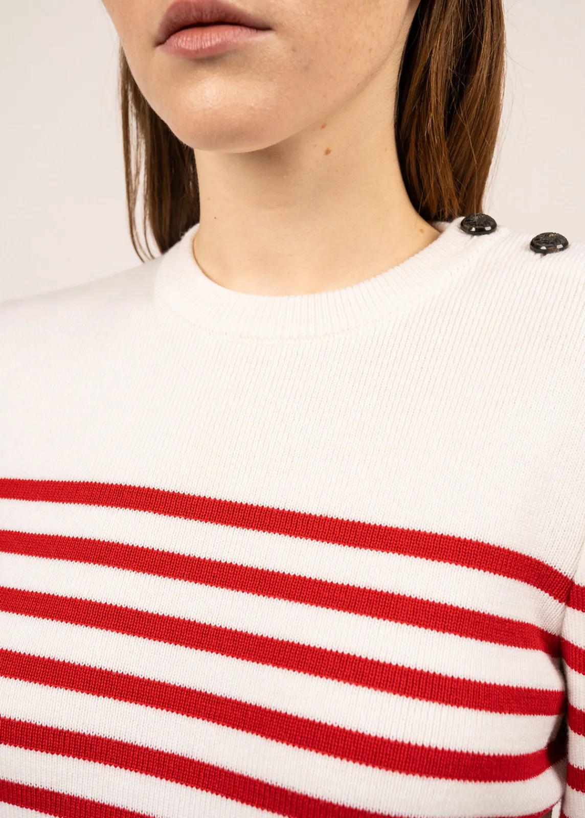 SAINT JAMES Pulls Marins*Pull marin rayé Rochefort Ecume/rouge
