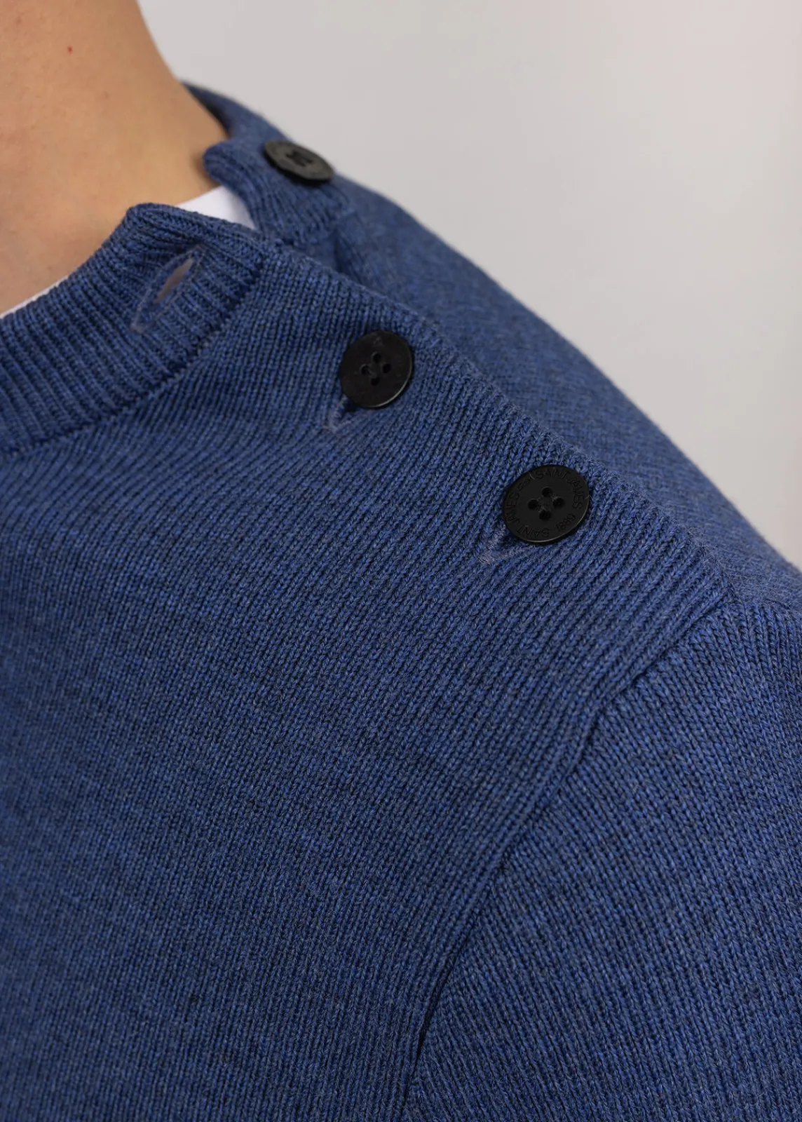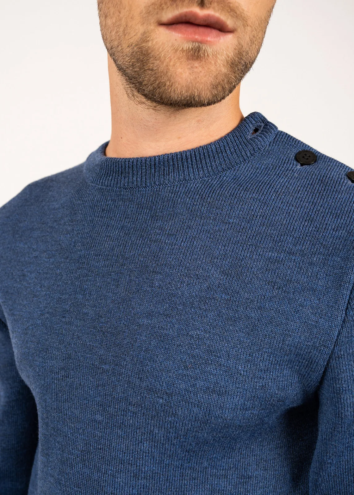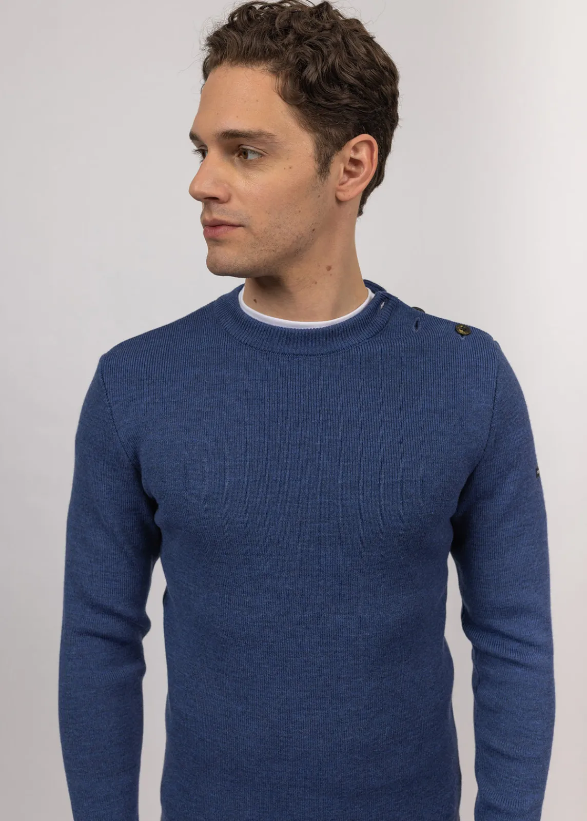 Modèle idéal de ceux aimant le charme du pull marin authentique mais recherchant plus de confort, le pull marin Rochefort est à la fois traditionnel et confortable. Confectionné en laine mérinos, il est doux, chaud, mais également respirant. Sa coupe reprend les codes du pull marin classique : un col rond remaillé, un boutonnage à l’épaule pour faciliter l’enfilage, un tricotage en côte 1×1 et une longueur permettant de protéger le dos, même lorsque l’on se baisse.